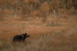 Between late August and September, the area has its autumn ruska season, so the surrounding nature will usually be stunningly colorful. Bears are still active until the end of our season, but are present in smaller numbers, as some males start migrating back to Russia for the next hibernation.
